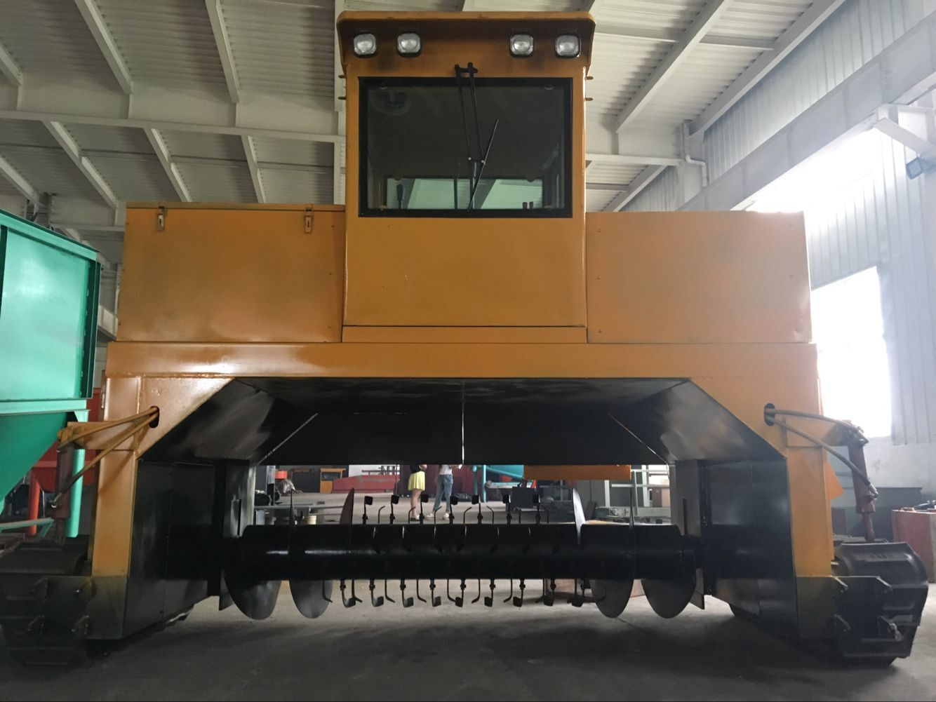 履帶式翻拋機(jī)地面堆放發(fā)酵模式是目前節(jié)省土建、人力資源的一種制肥模式。需將物料堆成長(zhǎng)形條垛,由翻堆機(jī)定時(shí)對(duì)物料實(shí)施攪拌、破碎,在好氧條件下進(jìn)行有機(jī)物的分解。兼有破碎的功能,大大節(jié)省了時(shí)間和勞力,使有機(jī)肥廠生產(chǎn)效率和產(chǎn)品質(zhì)量有顯著提高,成本大大降低。翻堆機(jī)工作時(shí)可以很有效地把污泥、粘稠雞糞等物料與菌種、秸稈粉攪拌均勻。為物料發(fā)酵創(chuàng)造了更好的好氧環(huán)境。不僅比深槽發(fā)酵速度快的多,還有效防止了發(fā)酵過(guò)程中硫化氫、胺氣、吲哚等有害、惡臭氣體的產(chǎn)生,符合環(huán)保要求。